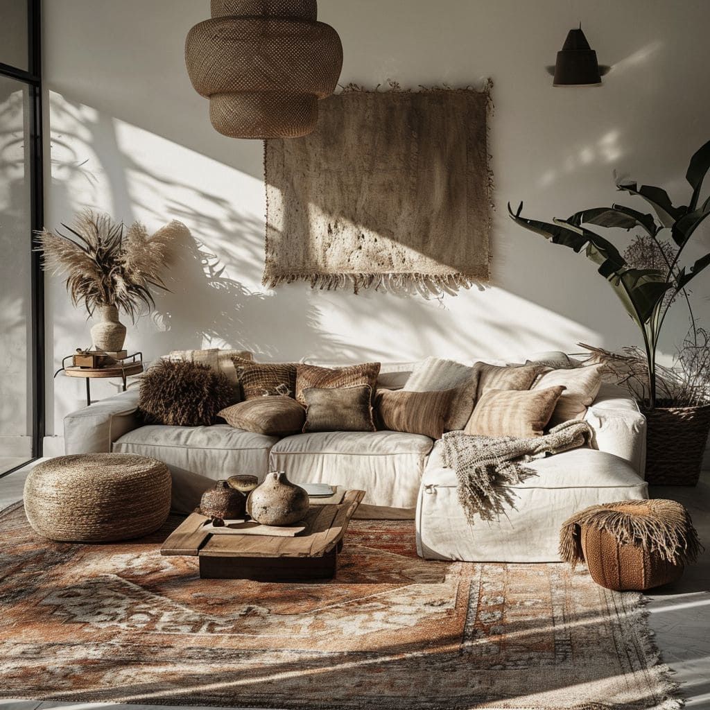 - Matériaux : Le bois brut, la céramique artisanale et le lin sont les piliers de cette déco organique.